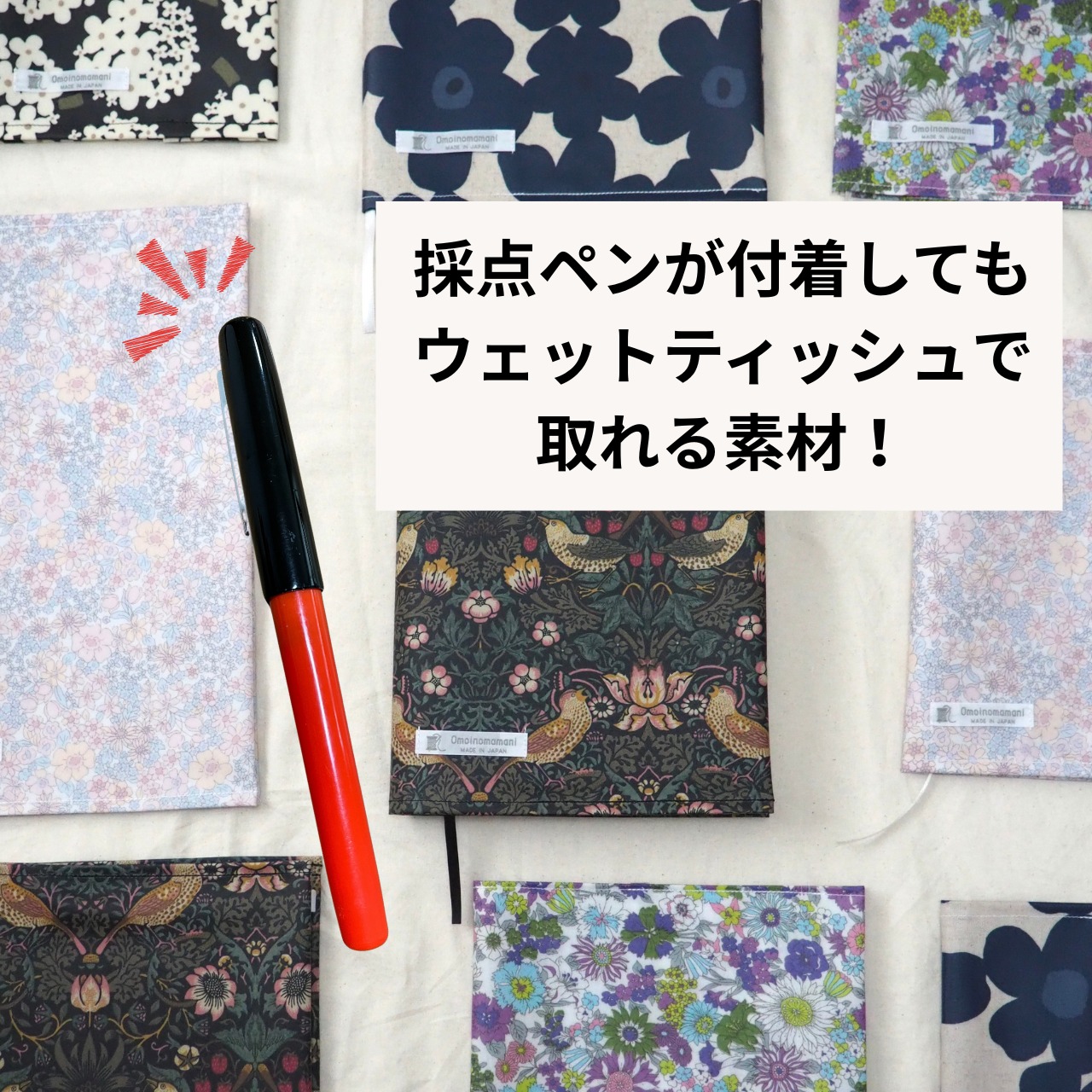 ・柄4種類展開(北欧風ネイビー、淡い小花柄ピンク、華やかパープル、紫陽花ブラック)
