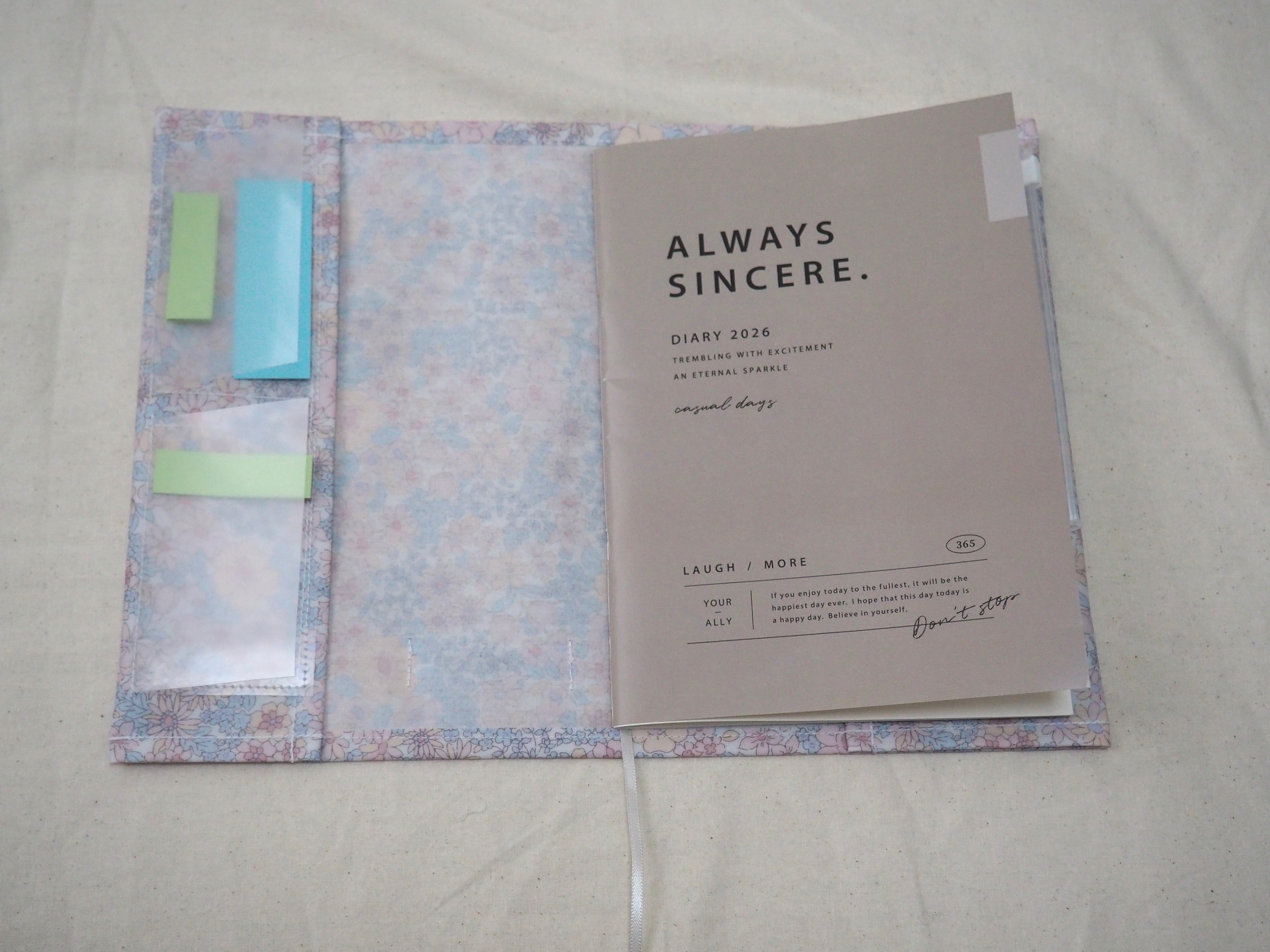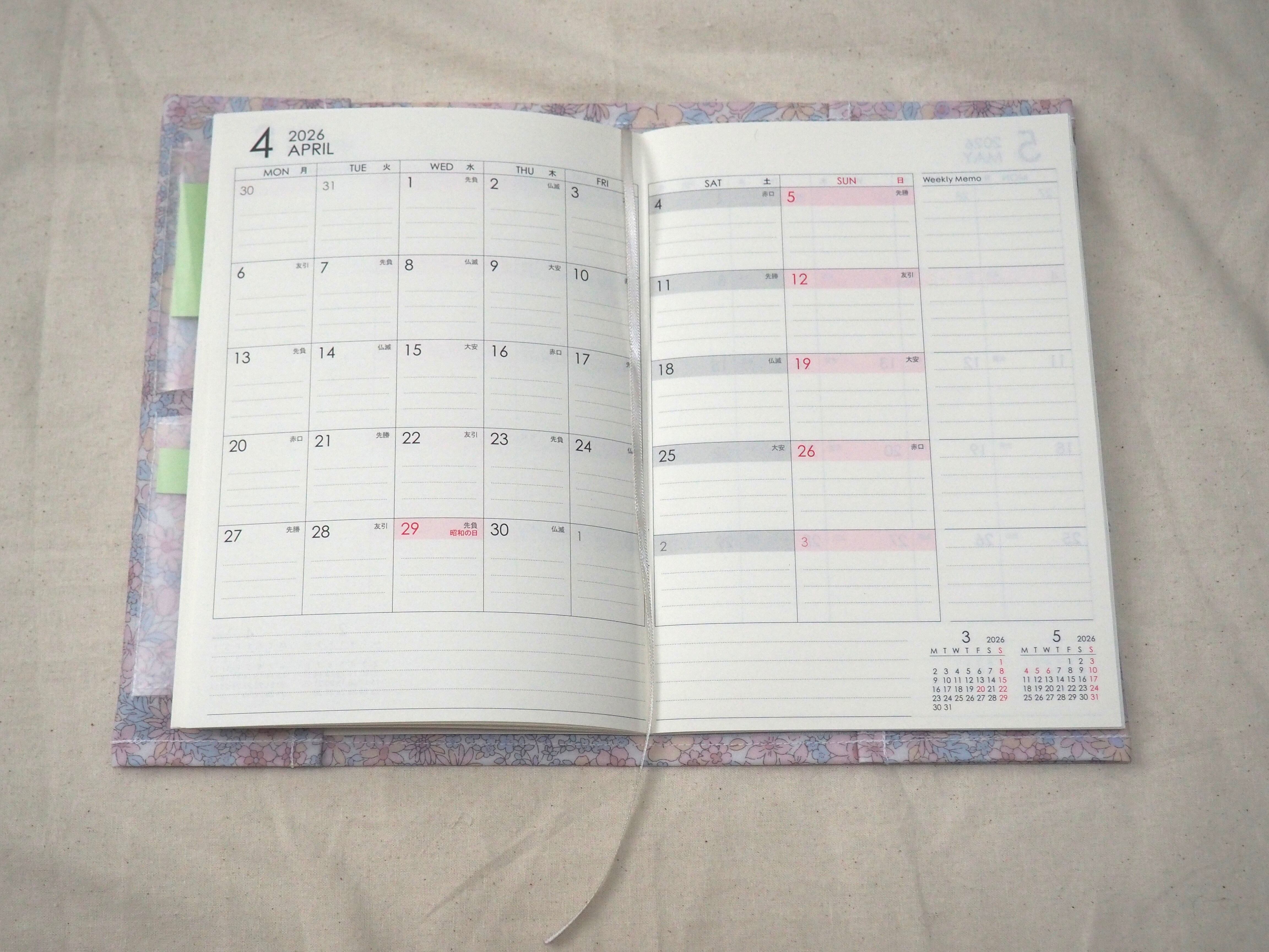 見開き左側は、付箋が汚れない仕様になっています。